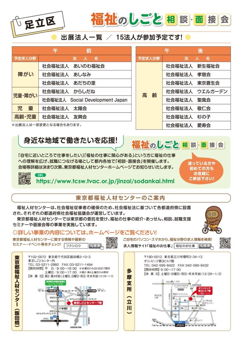 - 【主催】足立区社会福祉法人連絡会/社会福祉法人 足立区社会福祉協議会/社会福祉法人東京都社会福祉協議会 東京都福祉人材センター【共催】足立区/ハローワーク足立