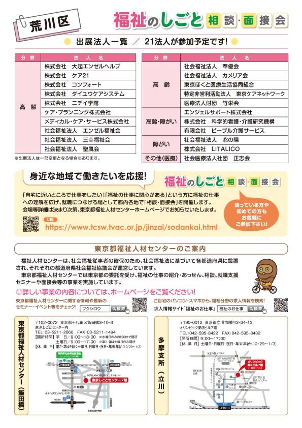 - 【主催】荒川区/社会福祉法人 荒川区社会福祉協議会/社会福祉法人 東京都社会福祉協議会 東京都福祉人材センター(共催)ハローワーク足立/荒川区介護サービス事業者連絡協議会