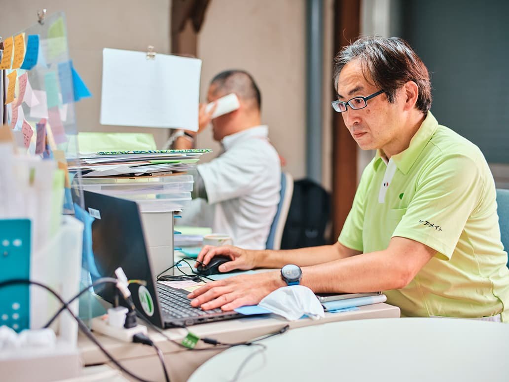 長く家業の製氷業を営んでいた山根さん。50代を前に事業撤退を決断し、全く新しい世界へと飛び込みました。資格を取得し、訪問ヘルパーからサービス提供責任者へ。そして今は、地域に暮らす人々を支える存在として活躍しています。