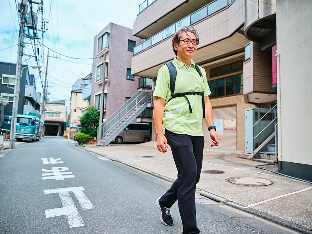 都内で家業の製氷業を営んできましたが、事業の継続を断念する決断を下しました。転機を迎えたのは50代を目前に控えた頃です。「年齢を重ねるほどに転職はどんどん狭き門になる。体力もあり、動けるうちに。」と考えたことが、第二のキャリアへ踏み出すきっかけになったといいます。介護福祉士の資格を取得し、現在は株式会社ケアメイトでサービス提供責任者(注)として活躍しています。