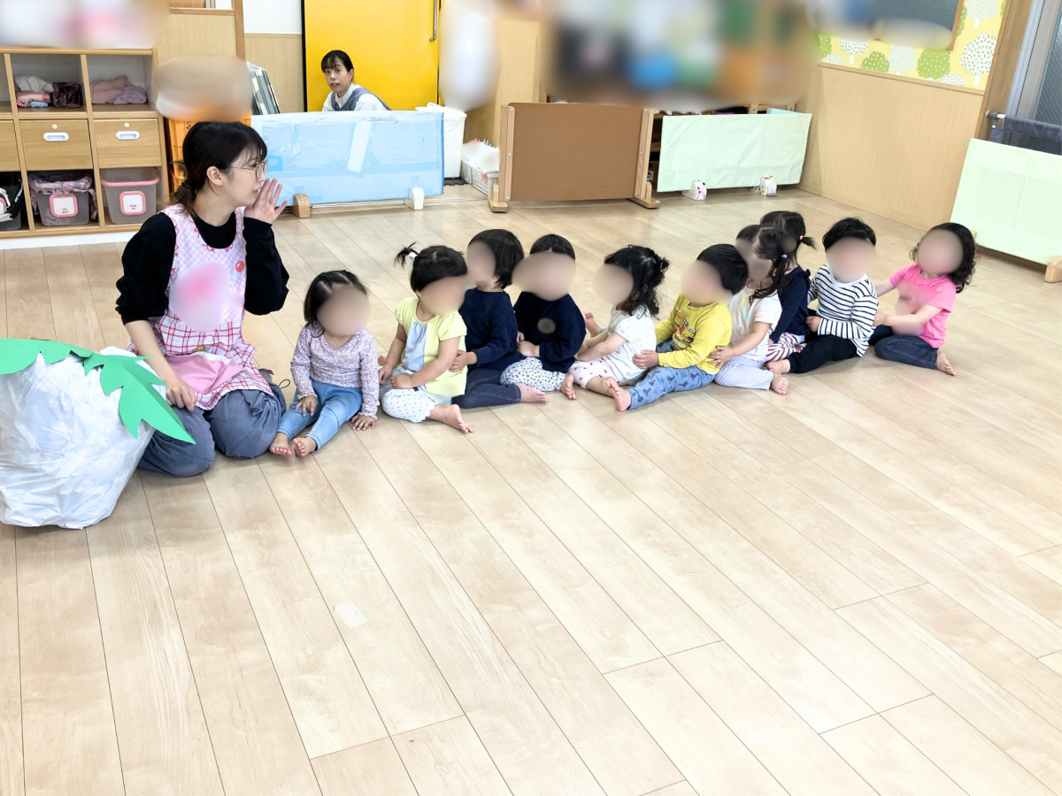 0歳児は体や脳の発達が著しくみられる時期なので保育士とのスキンシップや体験を通して心身と心の発達を大切にしていきたいと思います。