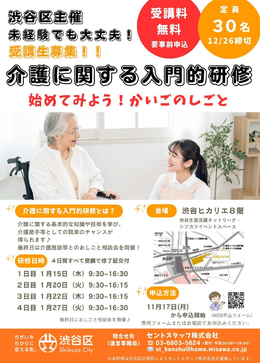 【渋谷区】令和7年度第2回「介護に関する入門的研修&おしごと相談会」(渋谷区)