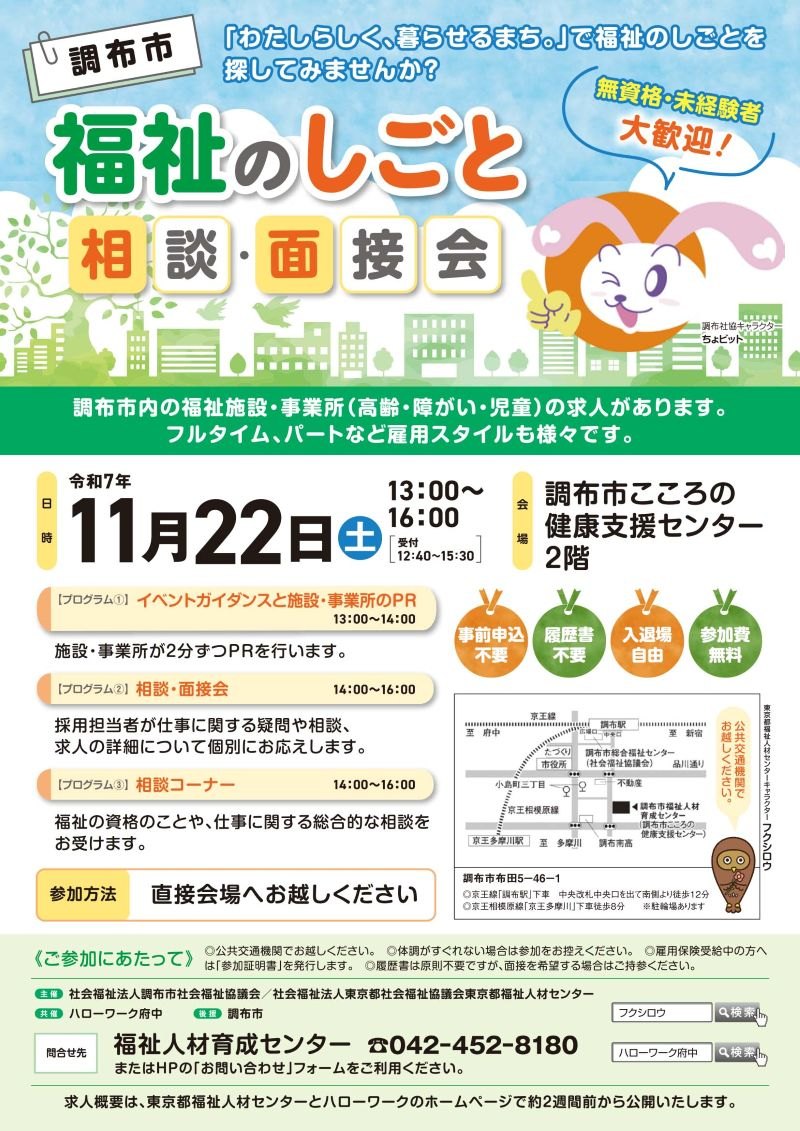 【東京都福祉人材センター】調布市「福祉のしごと相談・面接会」のご案内(調布市)